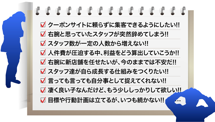 上記は私が「お困り事100サロンリサーチプロジェクト」として実際に理美容室オーナーから直接お聞きしたお困り事です。